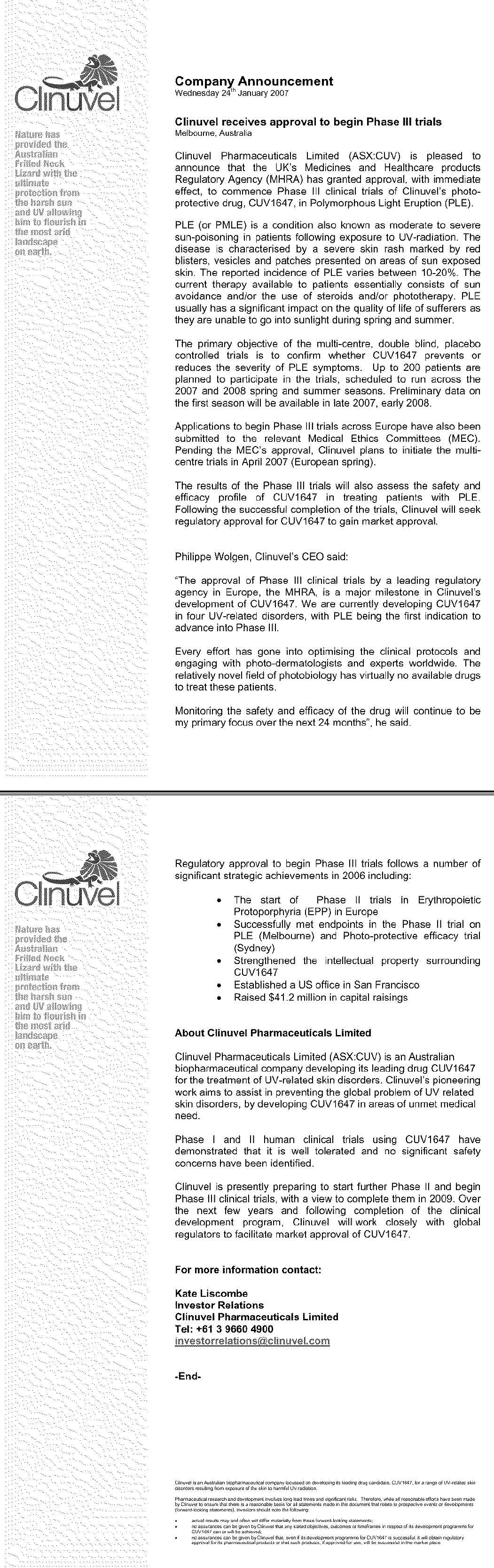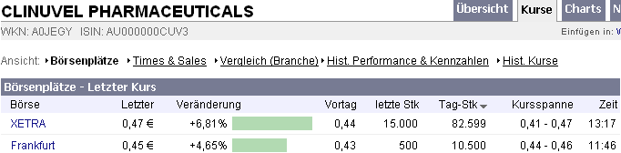 WKN: A0JEGY / ISIN: AU000000CUV3Chartcheck - Clinuvel Pharmaceuticals