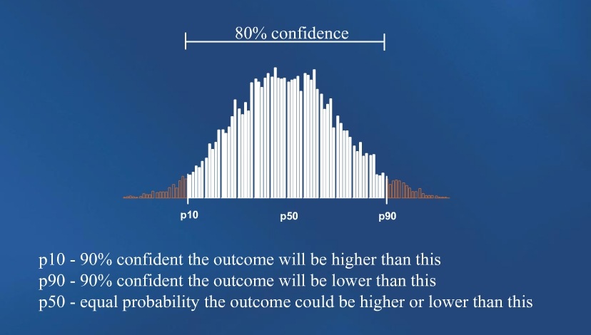 Den der Berechnung zugrunde liegenden 2P-Werte ("Reserves") liegt ein Konfidenzniveau von 50 % zugrunde. Es handelt sich somit um den mittleren Erwartungswert.