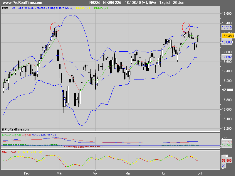 @JB, vielleicht gelingt ja im Nikkei der Durchbruch durch die waagerechte Widerstandslinie. Für mich ist es ein Auwärtstrend, der sich unter der waagerechten Linie stauen wird, um dann mit einem starken Impuls duchzubrechen. Long is on.