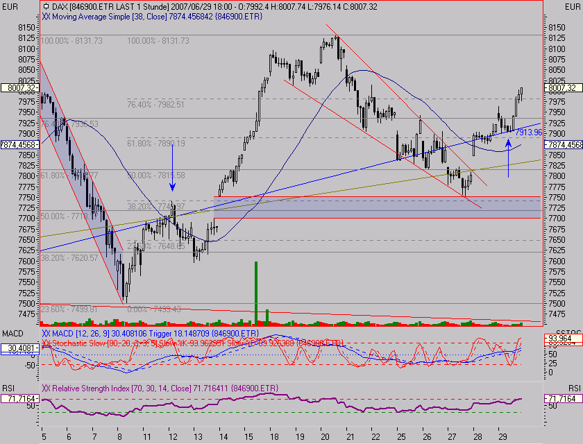 Und schaut Euch einmal die Charts des Dax und des DJ an, dort ist zu sehen, dass die Ami`s schon um einiges mehr korrigiert haben als der Dax. Die Frage ist jetzt natürlich, warum?