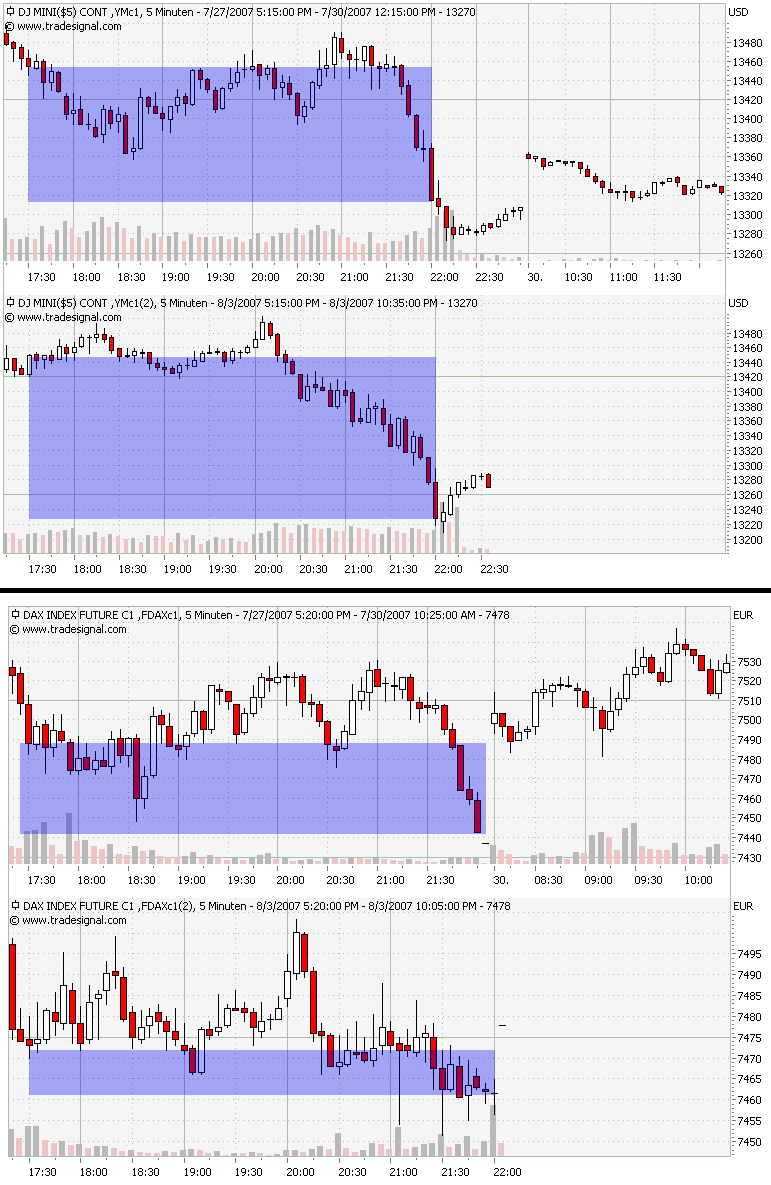 FDax ist letzten Freitag den Abwärtsbewegungen mehr oder weniger im Dow gefolgt um dann am Montag aber mit UpGap im Fdax zu eröffnen(Gap wurde dann aber Intraday geschlossen).