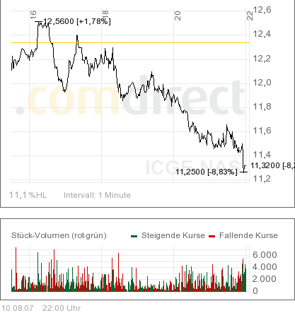 Deshalb eignet sich z.B. die Internet Capital Aktie als krisensicheres Investment. Wie wir an dem Chart vom Freitag unschwer erkennen können, haben die Anleger die Hysterie genutzt und sind verstärkte Engagements eingegangen. Hier können die Greenhorns mal sehen, wo Bartel den Most holt. (so, Satire-Generator aus!)