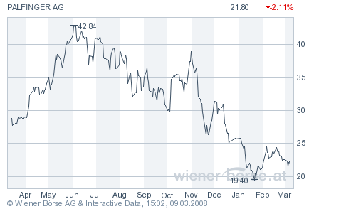 Nach volatiler Phase im Januar 2008 bildet die Aktie der Palfinger AG (WKN: 919964 ISIN: AT0000758305) erst jetzt wieder erste zaghafte Peaks aus.