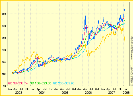Sollten die Märkte allerdings ohne große Gegenbewegung einfach immer weiter crashartig nach unten fallen, hat die Kreditmarktkrise eine wesentlich größere Bedeutung, als gemeinhin gedacht. Wenn aber nun auch noch der Aktienmarkt in den USA massiv einbricht, sollten wir so langsam anfangen, die wirklich bearishen Sichtweisen auf einen anwendbaren Wahrheitsgehalt zu überprüfen. Aber soweit sind wir noch nicht...