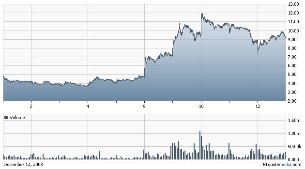 der Wert ist sehr volatil. Die letzten Wochen waren ein ständiges Auf und Ab. Heute newsgetrieben geht es hoch.