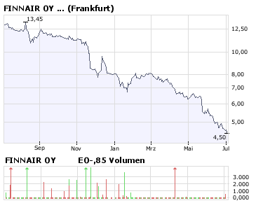 Konzernchef Jukka Hienonen nannte neben den hohen Treibstoffpreisen auch einen "Trend zu niedrigeren Ticketpreisen" und Überkapazitäten als Hintergrund für eine negative Entwicklung für die gesamte Flugbranche. Auch die bevorstehenden sechs Monate würden für Finnair "schwer werden". Das Unternehmen will unter anderem 500 von insgesamt 9.500 Stellen streichen und die Zahl von Linienflügen reduzieren. /tb/DP/sb
