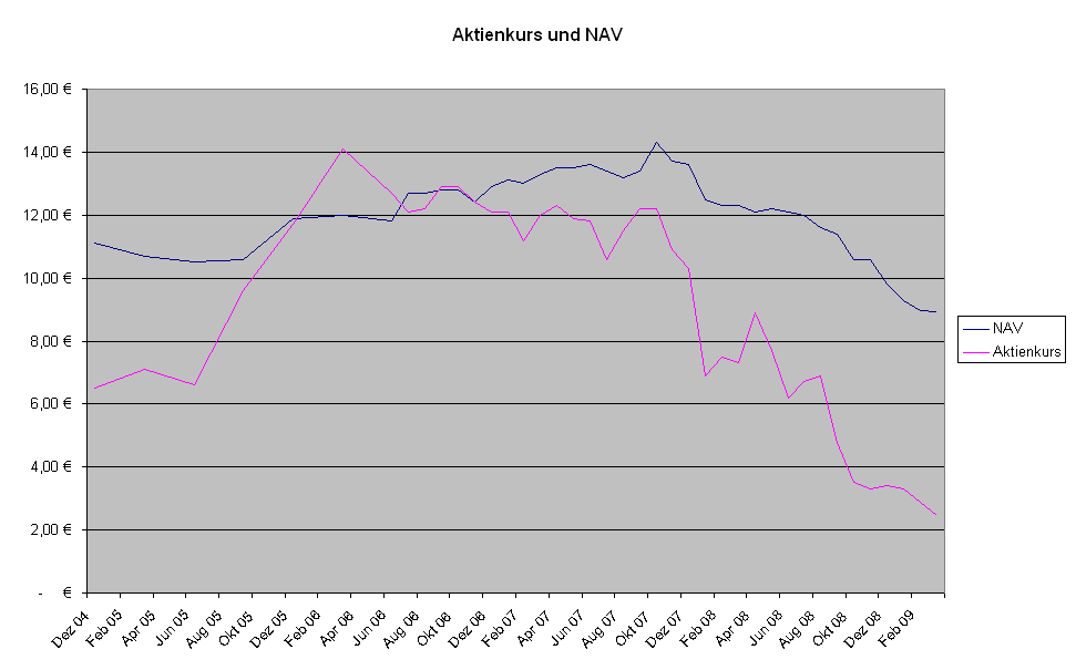 Der NAV betrug zum 31. Dezember 2008 0,98 Euro. Gemessen am Aktienkurs von