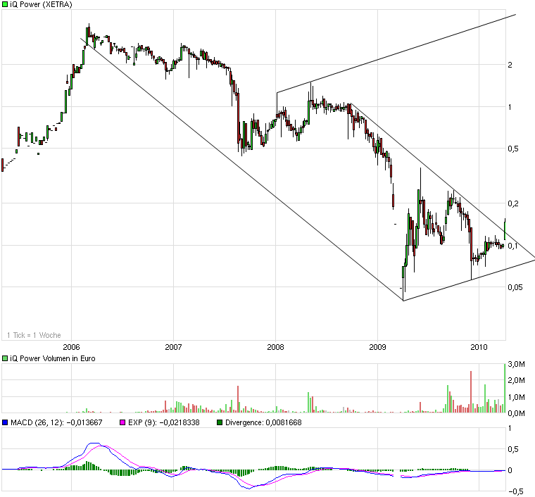 Aus gegebenen Anlass eröffne ich nun, nachdem der Kurs bei iQ Power so langsam an Fahrt gewinnt, anlalog, wie ich es bereits schon früher bei W:O zelibrierte, einen reinen Charttechnik und Analysenthread.