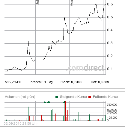 ... und das bei einem Börsenwert von NUR 10 Mio € .... die Aktie kann auf 1 € steigen !