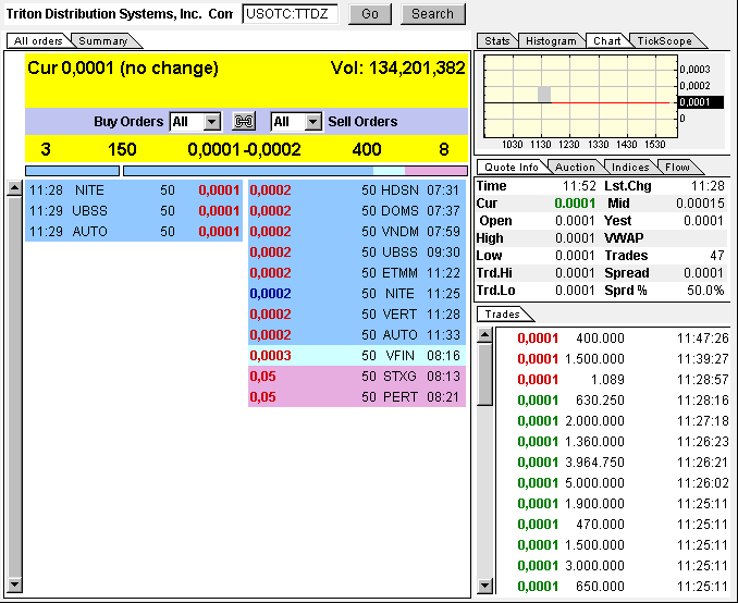 "It has come to our attention that the heavy trading of the Company stock that occurred lately, is fictitious and shareholders that are trading the stock should be prudent," said Gregory Lykiardopoulos, Chairman and CEO of Triton Distribution Systems, Inc.