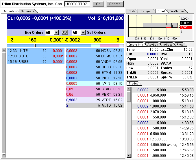 TIBURON, CA, Oct 27, 2010 (MARKETWIRE via COMTEX) -- Triton (pinksheets:TTDZ) announced today that the Company will not extend the deadline related to its Corporate Action for shareholders to turn in for exchange their certificates to the transfer agent by October 30th, 2010.
