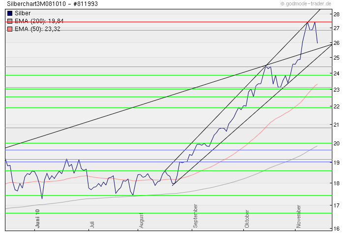 Und dies würde dann auch den Banken wie JPM in die Karten spielen, die dann ihre Leerverkäufe mit Gewinnen auflösen und dann Long bei deutlich niedrigeren Kursen wieder rein gehen können. Naja und bis dahin wird die Zahl der Skeptiker zugenommen haben, Kursziele fernab der 2000$ werden seltener zu finden sein und die Experten begnügen sich wieder mit konservativeren Kurszielen, sagen wir mal 1600$ bis 2000$ in 2011