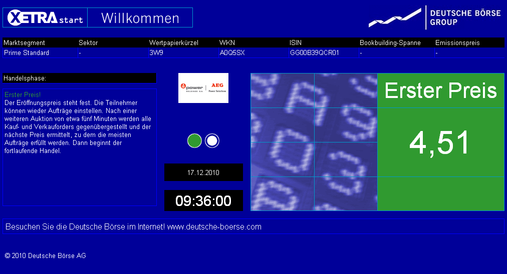 Mit dem Wechsel in den Prime Standard wird die 3W Power Holdings SA im Qualitätssegment der Deutsche Börse AG notiert sein und sich den höchstenTransparenz erfreuen.