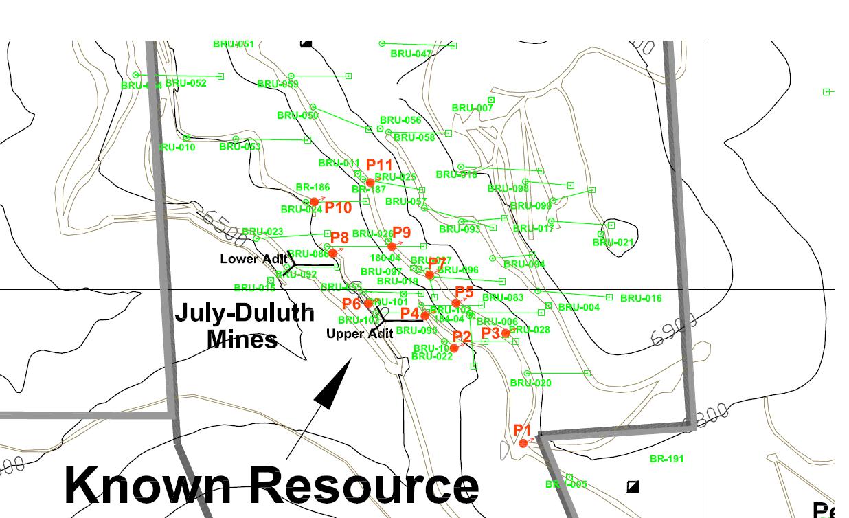 Vor allem das Bohrloch BRU-27 ist heftig. 1,26 bzw. 1,8 oz /Au wurden über jeweils 5 Meter erbohrt. Und jetzt schaut auf das Bild unten. Mit dem neuen Bohrloch P 7 bohrt man neben dem historischen Bohrloch BRU-27! Ist doch klar was passiert wenn die neuen Bohrergebnisse die historischen Ergebnisse bestätigen...