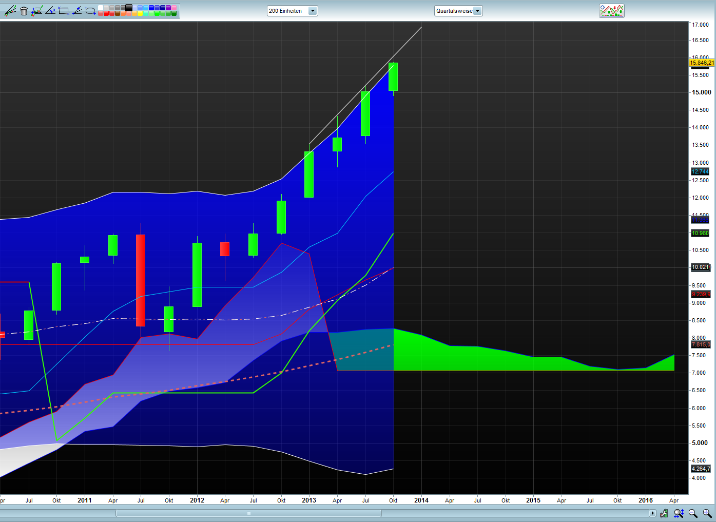 Ich erwarte allerdings ganz klar nur eine Zwischenkorrektur vor langfristig weiter steigenden Kursen. Bis 2020/2025 könnte ich mir einen DAX von sogar 20.000 Punkten vorstellen.