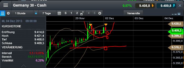 Dax könnte also nochmal die 9400-9378 ansteuern. Bruch? Dann wird es rot ....