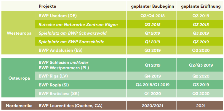 3 neue Baumwipfel Pfade und zwei Waldspielplätze sollen in 2019 eröffnet werden! Durch die Neueröffnungen erwarte ich dass der Umsatz und das Ergebnis in den Jahren 2018-2020 jeweils um 20-30% wachsen dürften.