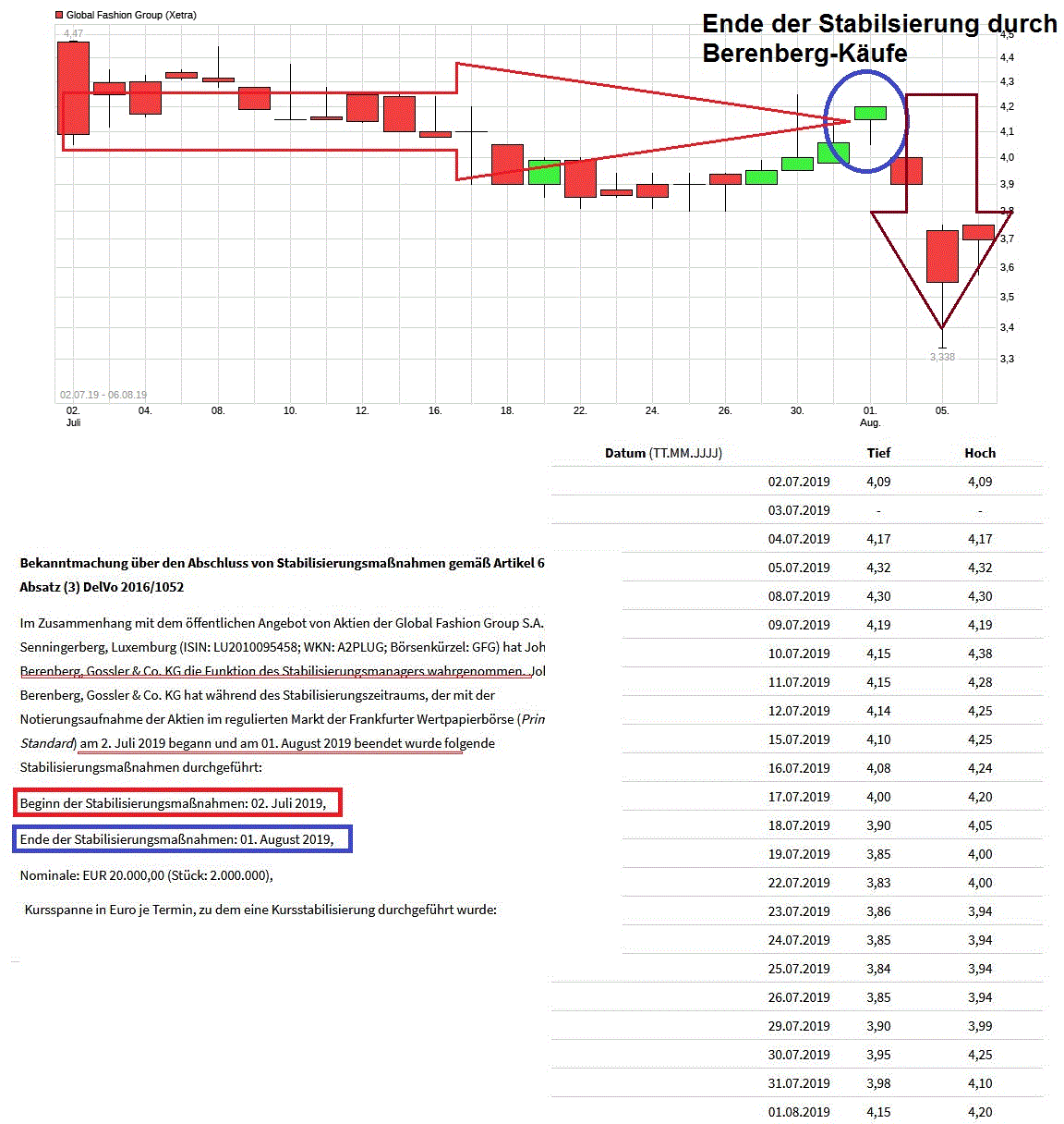 Die defizitäre GFG also ein noch größerer IPO-Ladenhüter als gedacht? Ohne die massiven Käufe der beiden Großaktionäre ( die 60% aller Aktien kaufen die beim IPO ausgegeben werden) wäre das Ding nicht von der Rampe gekommen, selbst bei dem bereits weiter reduzierten Ausgabekurs. Die beiden Großaktionäre müssen jetzt 180 Tage die Lock Up Frist aussitzen und dürften dann wohl relativ schnell versuchen die Teile zu distribuieren, da man ja jetzt sogar noch mehr Aktien hat von dem Minusmacher als vor dem IPO. Hoffentlich läuft der Verkauf der Kleider besser als der Verkauf der IPO-Aktien :
