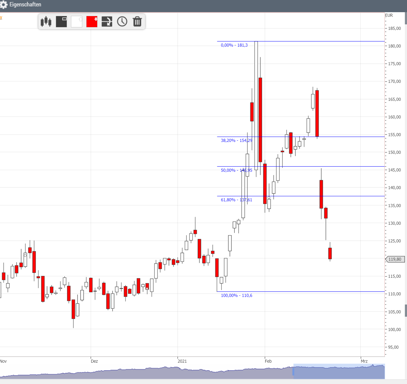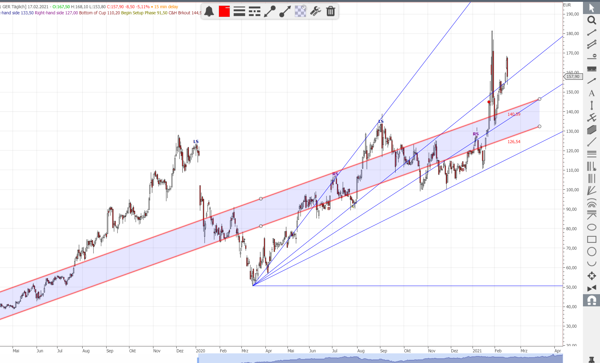 Der Wert wird nach oben ausfächern, dabei ist egal, ob der Fächer im Coronatief oder im November geankert wird, es führt zu kongruenten Ergebnissen. Ich halte den höchsten Fächerkeil nach wie vor für ungesund.