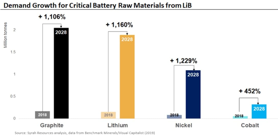 Gegenüber anderen Metallen wie Kupfer oder Lithium fristete Graphit bisher ein Schattendasein und findet in der Investmentwelt noch wenig Beachtung. Graphit ist eine stabile Form von Kohlenstoff und zeichnet sich durch extrem hohe Hitzebeständigkeit und Widerstandskraft aus, deshalb wird das Metall hauptsächlich in der Stahlindustrie gebraucht, zum Beispiel für die Verkleidung von Brennöfen, um sie gegen die Hitze widerstandsfähig zu machen. Die höchste Nachfrage dürfte in Zukunft jedoch aus der Elektromobiliäts-Branche kommen, da Graphit ein essenziell wichtiges Element für die Herstellung von Lithium-Ionen-Batterien ist.