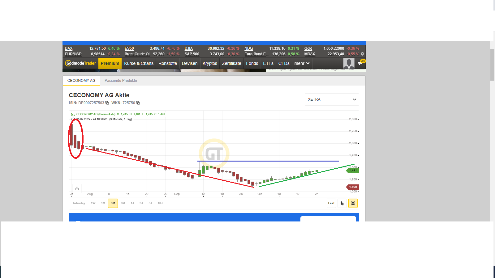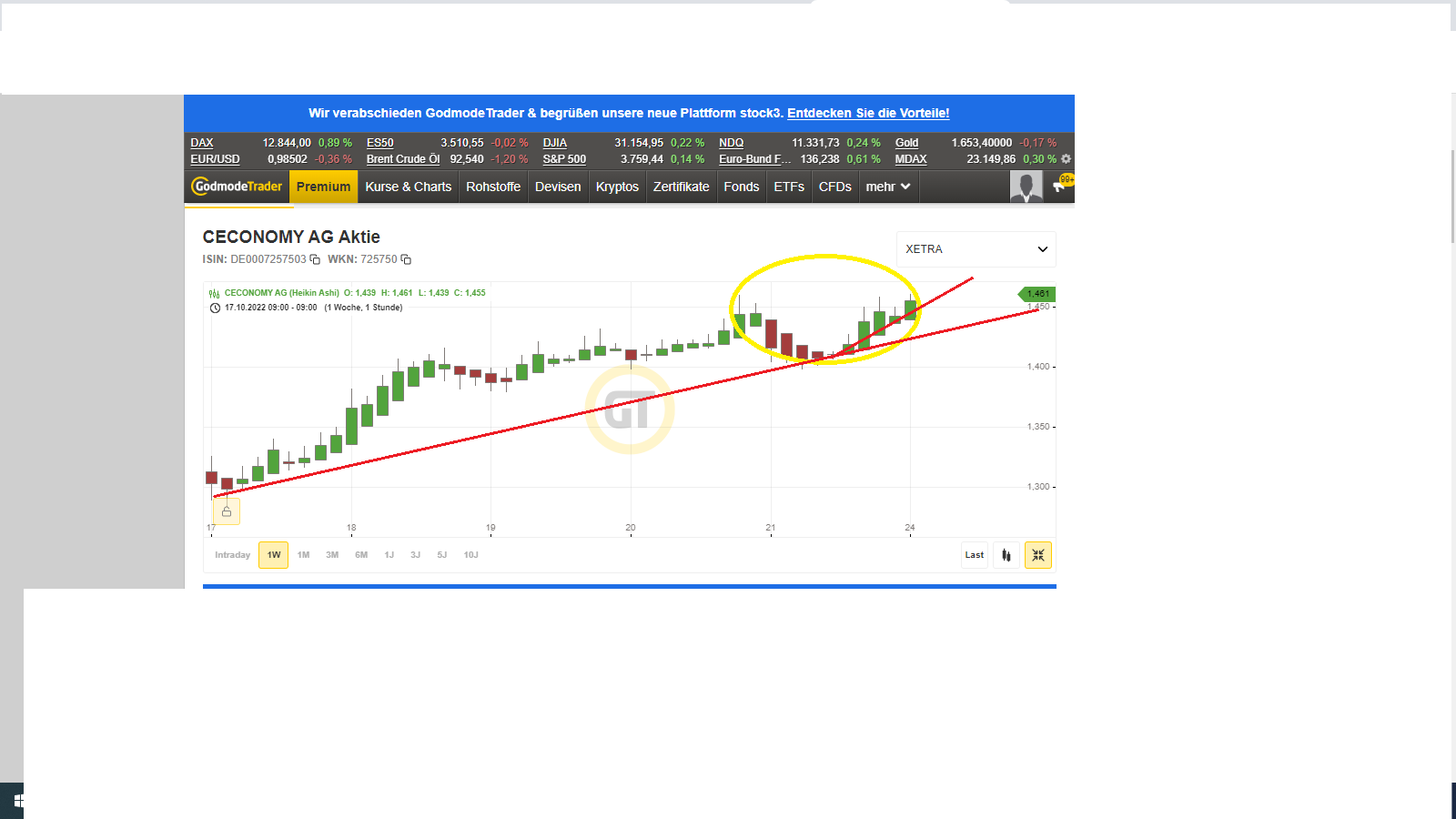 Ceconomy weiß nicht so recht wohin...kein Fleisch und kein Fisch...aber auch das wird sich mit den US Boy´s ändern...letzte Woche gab es immer wieder mit US Start einen Schub nach oben...den man nun bräuchte um das Tageshoch zu knacken...We will see...