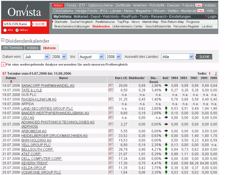 Dividenden nach Onvista