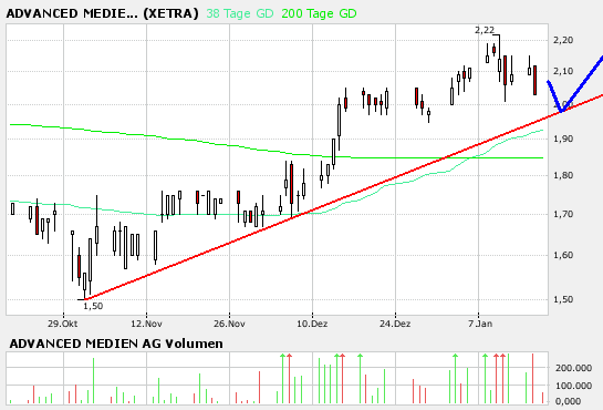Kerngesundes Unternehmen, daß sich durch organisches und externes Wachstum auszeichnet und seine Wettbewerbsfähigkeit permanent ausbaut. Vorbildlich ist auch die regelmäßige Unternehmenskommunikation mit den Aktionären. Aufgrund der aktuellen Zahlen und der ausgezeichneten Wachstumsperspektiven sind die Aktien der Advanced Medien AG auf aktuellem Niveau deutlich unterbewertet.