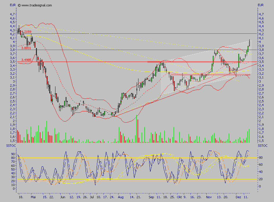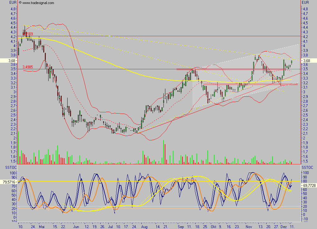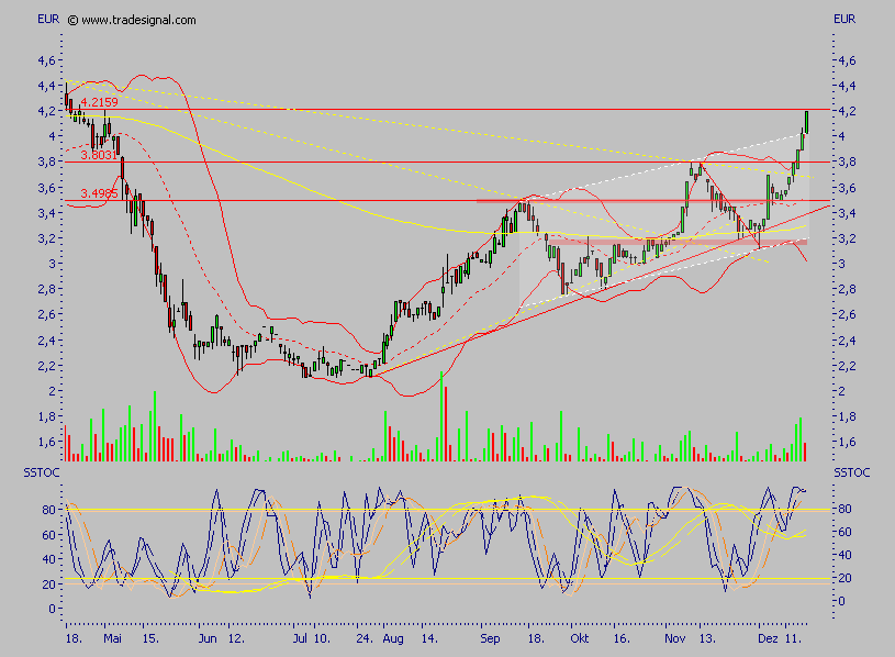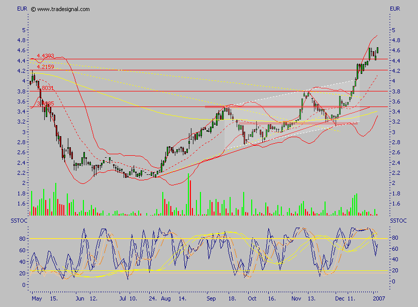 In diesem Zeitraum solle es mit dem Gewinn je Aktie von 0,303 Euro auf 0,866 Euro aufwärts gehen. Stimme diese Prognose, wäre das gleichbedeutend mit einem KGV von unter fünf. Neben der tiefen Bewertung komme eine ansehnliche Dividende als weiteres Kaufargument hinzu. Für das Geschäftsjahr 2006 sollten einem kürzlich veröffentlichten Vorschlag zufolge bis zu 20 Mio. Euro ausgeschüttet werden. Im Maximalfall wären das 25 Britische Pence je Aktie, umgerechnet ergebe das eine Dividendenrendite von 8,6 Prozent. Kein Wunder, dass sich der Aktienkurs zuletzt wieder deutlich von dem im Juli markierten Jahrestief abgesetzt habe.