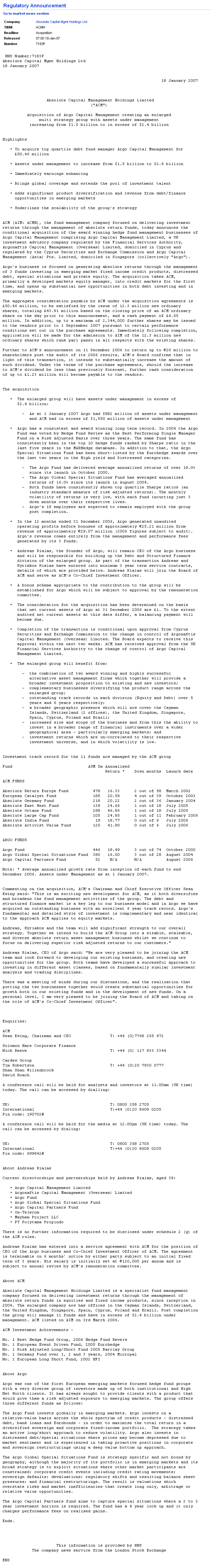 Die Experten von "Hanseatischer Börsendienst" halten die Aktie von Absolute Capital Management Holdings Ltd. für empfehlenswert. (Ausgabe 26 vom 20.12.2006) (22.12.2006/ac/a/a)