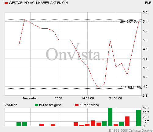 Die Aktie der Westgrund AG hatte Ende vergangenen Jahres nach einer starken Kursentwicklung drastisch verloren. Zuletzt pendelte sie zwischen vier und sechs Euro.