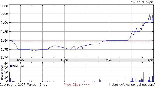 Was für ein Tageschart in den USA. Low: 2,71 High: 2,96 Close: 2,96