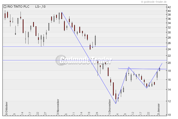 BHP Billiton habe nach dem Preisverfall im Rohstoffsektor seine Übernahmeofferte für Rio Tinto zurückgezogen. Zudem dürfte BHP Billiton durch die hohe Schuldenlast von 42 Mrd. USD abgeschreckt worden sein. Daraufhin sei die Rio Tinto-Aktie massiv unter Druck geraten.