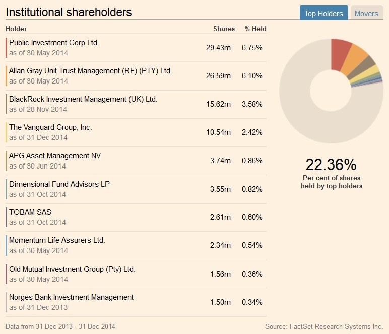 Zum 31.12.2014 halten die großen institutionellen Anleger insgesamt 22,36 Prozent der Aktien an dem Unternehmen.