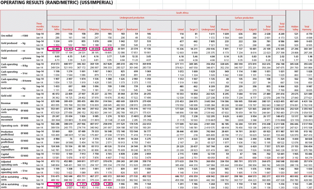 .....jetzt müssten sie noch ihre all-in-sustaining costs ein Stückchen runterbringen und die Sonne kann wieder aufgehen über Harmony......