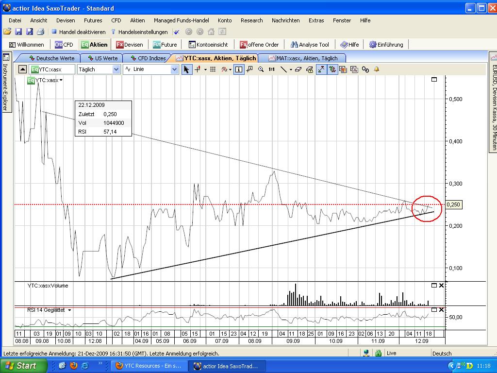 Daß YTC Resources momentan ein fantastisches Chance/Risiko-Verhältnis hat, erwähnte ich auch schon in meinem Thread "** Das Rohstoffperformancedepot **". Wenn ich die Kurse so in Deutschland ansehe, so muß ich leider feststellen, daß das nicht jedem bewußt ist. Für mich nicht nachzuvollziehen.