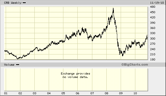Der CRB-Index ist zum größten Teil von Brennstoffen wie Erdöl, Erdgas und Benzin geprägt und hat daher kaum eine Aussagekraft.