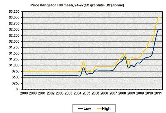 Source: Nick Hodge, Energy & Capital (4/12/12)"Now is the time to take advantage of the graphite bull. Prices for the mineral have surged 250% in the past few years thanks to a number of factors."