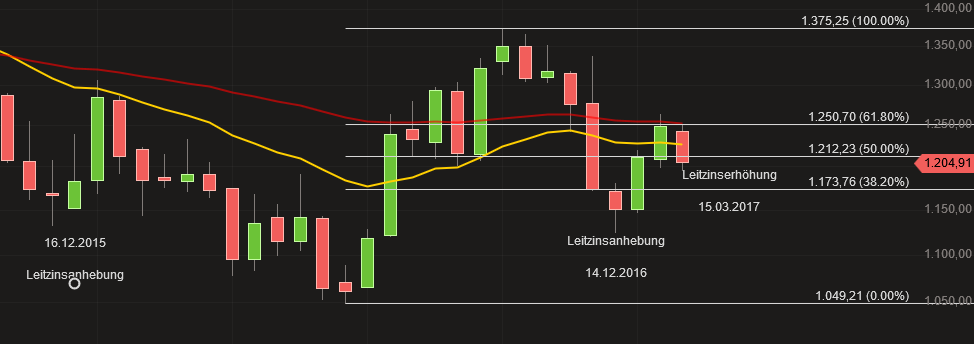 Die markanten Tiefpunkte im Monatschart findet man um den Termin der FED Leitzinserhöhung.