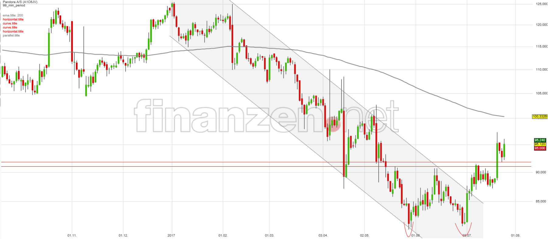 - Pandora ist momentan der 4t schlechteste Performer im EuroStoxx 600 und ist mit einem durchschnittlichen Abstand zu den Analystenkurszielen von 67% (!) die niedrigst bewertete Aktie