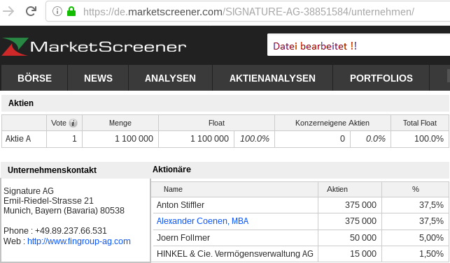 inzwischen durch verantwortlich Handelnde(n) der signature AG Aktien der