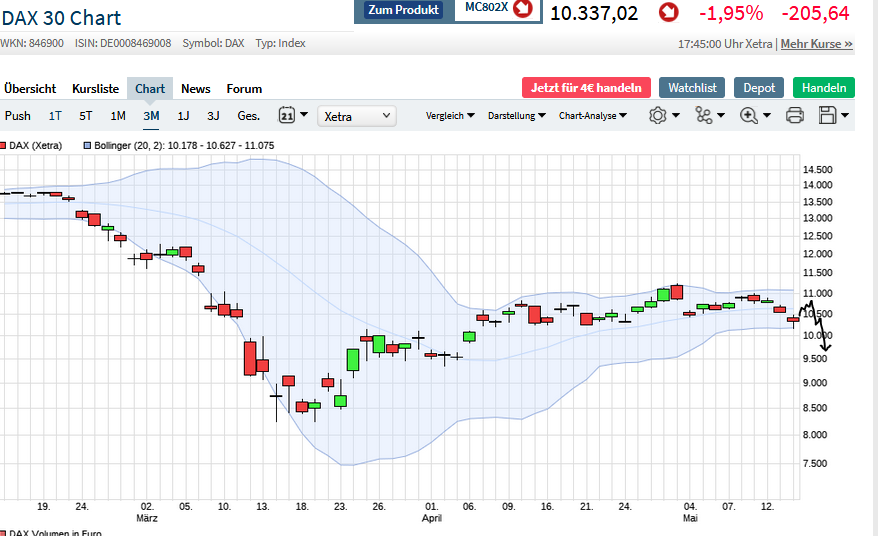 Dax fällt erstmal weiter, mal schauen ob die 10300 nun direkt angelaufen werden. Die Wirecard-Zahlen sind auf den ersten Blick ganz gut, muss ich mir aber genauer anschauen.