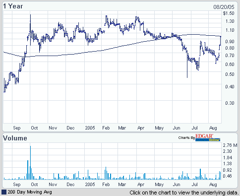 ein Plus von 28,9 Prozent heute in NY. Einge Male wurde bereits die 1,20 $ angekratzt die morgen bestimmt fallen wird. Der Kursverlauf versprich einiges in den nächsten Tagen. Vor allem war heute ein sehr hohes Volumen mit über 4 Mio.Stück, d.h. ca. das 20fache des durchschnittlichen Tagesumsatzes der letzten 3 Monate.
