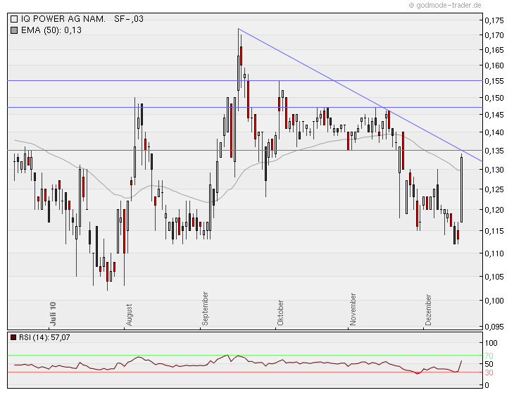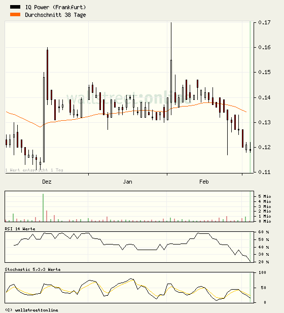 die Aktien von IQ Power sind ein so genannter Pennystock. Die Aktien notieren im Moment bei 0,135 Euro und die Risiken bei diesem Aktientitel sind derzeit sehr hoch!