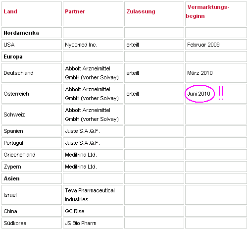 Bei Clinical Trials gab es Änderungen bei der Phase IV Studie Veregen 15% (nur für US, da EU nur 10%!!) am 10.08.2010, und in der P2 Studie TRNBC, am 05.08.2010!!
