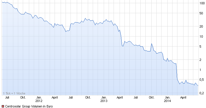 gewisse Parallen zum Chart von sma sind da schon irgendwie zu sehen. Bei 100 waren wir auch mal. Der Zickzackkurs zwischen unter 20 und über 30 kommt mir ebenfalls bekannt vor. Hoffen wir mal, dass uns dann der weitere Kursverlauf von Centrosolar bei sma erspart bleibt.