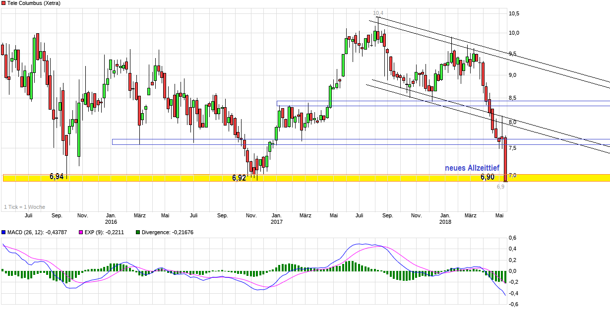 Den dicken Widerstand im Bereich um 6,90/7,00 sehe ich durchaus ebenfalls. Aber kannst du mal die von dir genannten Supportlevels genauer erläutern? Mit dem Sturz durch die Region um 6,90 ist man in Regionen gelaufen in denen man zuvor nie war. Von daher gibt es zumindest keine alten Unterstützungen mehr. Sehe hier sogar die nicht geringe Gefahr, daß man noch in den 5,xx Bereich fällt. Zumal ich auch bei den nächsten Zahlen nicht mit guten Dingen rechne. Wenn man schaut was in dem Unternehmensbericht steht, dann sind hier tiefergehende und längerfristige Probleme&Baustellen zu sehen. Aber klar, technische Gegenbewegungen sind immer möglich, da Aktien selten ohne "ZickZack" steigen oder fallen. Ist auch die Frage, ob hier vielleicht noch Leerverkäufer mit im Boot sitzen und auch hier mal der ein oder andere LV etwas wieder eindeckt.