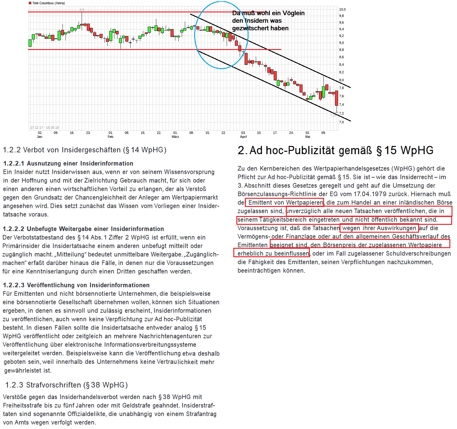 Es hat sich damit bestätigt, daß TC eben genauso eine Wurstbude ist wo aktionärfeindlich der "normale" Anleger nicht ernst genommen wird und Dinge die kursrelevant sind (gesetzwidrig) lange verschwiegen werden anstatt die zeitnah mitzuteilen. ( http://www.stendal.hs-magdeburg.de/project/...tikel/Bafin/insider.pdf => Ausführungen zu Paragraph 14 und 15 WpHG ). Ich bin mir ziemlich sicher, daß man schon vor vielen Wochen/Ende März wußte, daß die Prognose nicht haltbar ist. Für mich wurde hier mal wieder Paragraph 15 WpHG bewußt umgangen, um eben erst den Insidern Vorsprung zu geben :( .