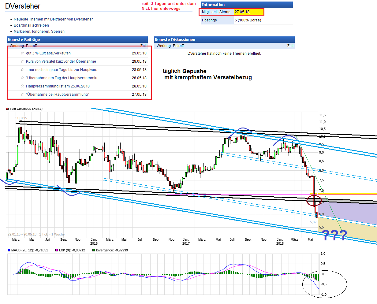 Ich schrieb ja schon im Posting #245 am 13.4.18 ( http://www.ariva.de/forum/...mbus-achtung-50-525070?page=9#jumppos245 ) ".. Finanzvorstand macht den Abflug. Bevor es Zahlen gibt, wird erstmal überraschend der Abgang vom CFO gestern verkündet. Dazu stetig weiter fallende Kurse im Vorfeld. Mal abwarten, ob man hier präventiv ein personelles Bauernopfer schonmal bringt, falls die Zahlen nicht so gut sein sollten. Jetzt fällt scheinbar auch die horizontale Unterstützung bei 8,40. Indikatoren im Wochenchart alle noch im Verkaufsignalmodus. Schauen wir also mal was demnächst verkündet wird. .."