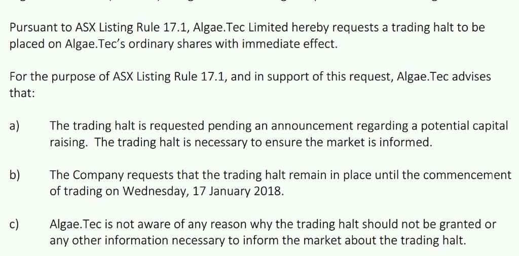 ja, er ist gemaess australischer regularien­ bis morgen vom handel ausgesetzt­. das ist in australien­ immer so.