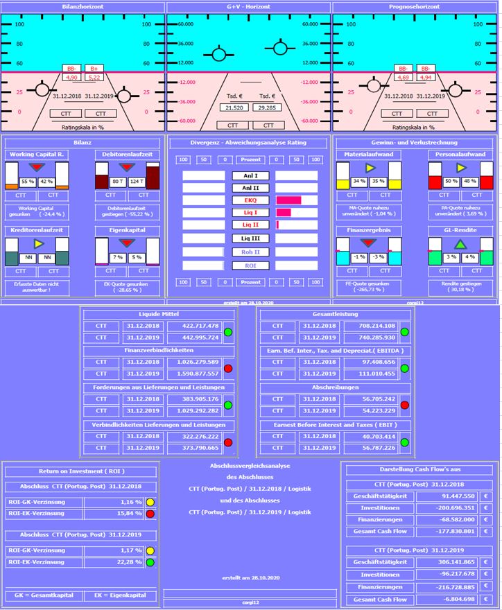 Bilanzratingnote: Die Bilanzratingnote hat sich von 4,69 auf 4,94 !!! verschlechtert. Welche Faktoren (Kennzahlen) dazu beigetragen haben, kann an der Divergenzdarstellung abgelesen werden.